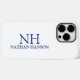 Boîtier de téléphone moderne avec un design simple et minimal bleu et blanc avec votre monogramme en caractères gras avec votre nom.