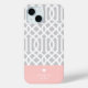 Élégant étui téléphonique personnalisé en gris, rose et blanc. Ce design présente un motif de treillis marocain préppant. Personnalisez-le avec votre nom monogramme ou tout autre texte personnalisé avec un symbole de coeur mignon. Utilisez les outils de conception pour choisir les couleurs arrière - plans, modifier les polices de texte et les couleurs et télécharger vos propres photos pour créer une couverture unique d'un appareil unique!