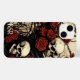 Coques Case-Mate iPhone Monogramme de crâne gothique et de roses rouges