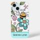 Communiquez avec style grâce à cette coque d'iPhone personnalisable qui présente un motif floral rétro tendance avec un bourdon fantaisiste. Inspiré par les motifs audacieux populaires dans les années 1960 et 1970, ce design allie des teintes joyeuses d'aqua, de rose et de jaune avec des contours audacieux et des fleurs stylisées. Un abeille amicale ajoute une touche fantaisiste. Modifiez le nom pour créer un accessoire de téléphone portable unique pour vous-même ou un cadeau original pour un anniversaire, un jour férié ou toute occasion spéciale. Parfait pour les femmes et les filles qui adorent le design vintage.