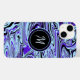 Motif Abstrait d'aquarelle bleu moderne Monogram coque iphone a un design unique cool bleu violet artsy ondulé. Personnalisez-le avec votre initial.