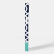 Élégant étui de téléphone personnalisé en bleu marine, bleu turquoise et blanc. Ce design présente un motif de treillis marocain préppant. Personnalisez-le avec votre nom ou autre texte personnalisé dans une police monogramme de script moderne. Utilisez les outils de conception pour choisir les couleurs arrière - plans, modifier les polices de texte et les couleurs et télécharger vos propres photos pour créer une couverture unique d'un appareil unique!