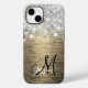 Joli or Brossé métal argent faux parties scintillant monogramme I-Phone boîtier de parties scintillant moderne luxe Chic girly brillant or brossé métal argent parties scintillant. Belle couverture moderne et cool pour les filles qui aiment les designs brillants et classe. Montrez votre style personnel, regardez à la mode, branché et vous sentez élégant avec un design unique sur un accessoire mobile ou customisez-le sur un autre produit de votre choix. Ajoutez votre nom avec une typographie de calligraphie cool et moderne. Il fait l'idée cadeau parfait pour un doux 16 anniversaire, mariage, douche nuptiale, anniversaires, baby showers ou fêtes de bachelorette, jour des valentines ou en cadeau en général.