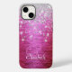 Joli Hot rose brossé métal brossé faux parties scintillant monogramme I-Phone boîtier de parties scintillant moderne luxe Chic girly shimmer chaud rose brossé métal argent parties scintillant. Belle couverture moderne et cool pour les filles qui aiment les designs brillants et classe. Montrez votre style personnel, regardez à la mode, branché et vous sentez élégant avec un design unique sur un accessoire mobile ou customisez-le sur un autre produit de votre choix. Ajoutez votre nom avec une typographie de calligraphie cool et moderne. Il fait l'idée cadeau parfait pour un doux 16 anniversaire, mariage, douche nuptiale, anniversaires, baby showers ou fêtes de bachelorette, jour des valentines ou en cadeau en général.