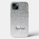 Ajoutez une touche glam à votre téléphone avec ce boîtier de téléphone chic, avec un motif arrière - plan de fausse parties scintillant argent sombre. Personnalisez-le avec son initiale en police serif blanche et son nom en écriture manuscrite de type fusain.