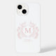 Classic Blush Rose Floral Crest Monogramme iPhone 13 Coque