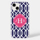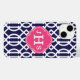 Coques Case-Mate iPhone Monogramme de Trellis moderne bleu marine et rose