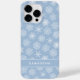 Créez un étui téléphonique de Noël personnalisé unique avec un élégant motif de flocons bleu ciel et blanc. Le texte modèle facilite la saisie de votre nom. C'est une idée mignonne pour les vacances d'hiver.