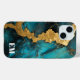 Coques Case-Mate iPhone Monogramme en marbre Abstrait turquoise bleu or