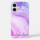 Monogramme en marbre violet Nom personnalisé iPhone 16 Coque unique