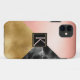 Un coque iphone élégant fait dans des formes géométriques de marbre noir, de feuille d'or et de brillance rousse regarde en trois sections. Une zone de texte carré noir et or, au milieu du coque, a un monogramme de broussailles à une seule lettre. Personnalisez le monogramme d'une lettre, pour vous-même ou comme une excellente idée cadeau pour elle.