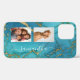 Coques Case-Mate iPhone Monogramme en pierre de marbre d'or Turquoise