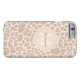 Une caisse décorée d'un monogramme de l'iPhone 6 d'impression brun mol moderne de girafe à peine là que vous pouvez personnaliser en ajoutant votre initiale de nom et de monogramme au cadre élégant. Ce motif animal mignon fait partie de la collection grillée de couleur de ressort de bases de dispositif d'impression de girafe d'amande.
