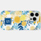 Coques Case-Mate iPhone Monogramme floral jaune et bleu initial