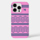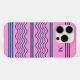 Coques Case-Mate iPhone Monogramme Motif de bandes ondulées bleu et rose