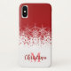 Ce magnifique coque iPhone X de Noël dispose d'un dégradé de flocon rouge et blanc et d'un nom et d'un monogramme personnalisables dans les tons rouge et rose correspondants.