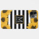Ce capot téléphonique est doté de bandes blanches et noires avec des tournesols et un monogramme de bordure en faux or. Personnalisez-le avec un nom et une initiale.
