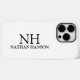 Boîtier de téléphone moderne avec un design noir et blanc simple et minimal avec votre monogramme en caractères gras avec votre nom.