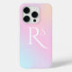 Monogram Ombre Holographic Pink Girly Personnalisé iPhone 15 Pro Phone Case dispose d'un arrière - plan holographique rose et bleu avec votre monogramme personnalisé au centre. Personnalisez en modifiant le texte dans les zones de texte fournies. Conçu par ©Evco Studio www.zazzle.com/store/evcostudio