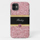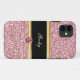 Étui iPhone à monogramme avec un fond à paillettes roses simulées et des strass diamants roses et des accents dorés, le tout imprimé numériquement comme une œuvre d'art pour imiter la réalité. Personnalisez le monogramme avec n'importe quel nom ou initiale. Protège votre téléphone mobile avec style et comporte des ouvertures pour tous vos ports et boutons. Conçu pour les dames ou les jeunes filles qui aiment les bijoux en diamants et les designs clinquants.