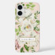 Caisses de téléphone monogrammed personnalisées avec votre nom ou autre texte. Ce joli design féminin présente une illustration florale blanche, verte et dorée sur un arrière - plan rose vif. Utilisez les outils de conception pour choisir une couleur arrière - plan, modifier les polices de texte et les couleurs ou ajouter vos propres photos pour créer un design coque d'une nature agréable.