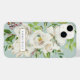 Caisses de téléphone monogrammed personnalisées avec votre nom ou autre texte. Ce joli design féminin présente une illustration florale blanche, verte et dorée sur arrière - plan de menthe pastel. Utilisez les outils de conception pour choisir une couleur arrière - plan, modifier les polices de texte et les couleurs ou ajouter vos propres photos pour créer un design coque d'une nature agréable.