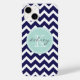 Coques Case-Mate iPhone Monogramme personnalisé Marine et Mint Chevron