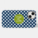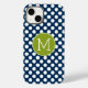 Coques Case-Mate iPhone Monogramme personnalisé Pois bleu marine et vert c