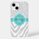 Coques Case-Mate iPhone Monogramme Poster de animal gris et turquoise
