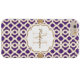 Il peut être personnalisé avec votre nom et monogramme à l'étiquette en forme de crochet imprimé ruban design sur le motif de carrelage pourpre et or. Ce motif d'inspiration marocaine en raisin, blanc et or est parfait pour une femme au style préppy et moderne. Oeuvre © Chrissy H. Studios, LLC. Tous droits réservés.
