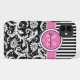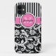 Coques Case-Mate iPhone Monogramme rose, noir, blanc rayé Damas