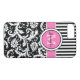 Coques Case-Mate iPhone Monogramme rose, noir, blanc rayé Damas