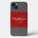 Modèle moderne monogrammé moderne gris et rouge damassé avec bandes Coque-Mate Barely There™ iPad Air coque peut être customisé avec votre logo, nom, initiales ou autre texte. Si vous avez besoin d'aide, envoyez un courriel à niteowlstudio@gmail.com.