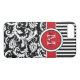 Coques Case-Mate iPhone Monogramme rouge noir blanc rayé Damas