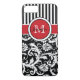 Monogramme moderne et tendance rayures rouge, noir et blanc avec coque damassé Vibe™ iPhone 7.