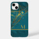 Coques Case-Mate iPhone Monogramme Thème Peacock Turquoise et or