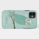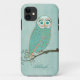 Hibou vert turquoise moderne abstrait Girly sur le coque iphone de monogramme de branche.