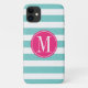 Coques Case-Mate iPhone Monogrammes personnalisés de bandes bleu clair et