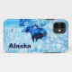 Image bleue et blanche d'un orignal de vache en milieu urbain en hiver. Les orignaux sont des résidents de nombreuses collectivités de l'Alaska qui vivent toute l'année. Ici à Anchorage il y a environ 1500 animaux, ainsi que des loups, des ours bruns et d'autres animaux sauvages.Ils sont généralement bien élevés. Ils traversent souvent les rues aux passages piétons après avoir attendu un signal de marche. D'une photo d'une orignale qui a traversé ma cour.