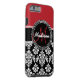 Coques Case-Mate iPhone Motif de Damas Noirs Rouges, votre nom Monogramme