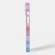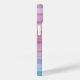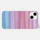 Un joli coque iPhone 14 avec un motif pastel aquarelle avec lignes et rayures en bleu aqua, lavande violet et rose clair.