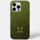 Motif en maille géométrique vert foncé de l'armée Monogram iPhone 15 Coque. Personnalisez avec votre initiale et votre nom personnalisés. Maille géométrique triangulaire avec dégradé vert foncé de l'armée de terre clair à foncé.