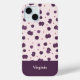 Un étui téléphonique avec un motif de fig sur un arrière - plan rose clair et, en bas, un prénom ou un texte personnalisable de votre choix sur un arrière - plan violet. Un beau cadeau pour un ami qui aime les fruits.