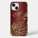Magnifique contemporaine glamour brillant or jaune métallique à l'aspect vintage romantique damask fleurs cachemire vignes motif sur un vin bordeaux foncé faux métal rouge arrière - plan. Avec de la place pour customiser ou personnaliser avec monogramme ou initial de votre choix. Design hipster original, branché, moderne et fantaisiste pour la fashionista artistique brillante ou glamour ou diva de mode glamour artistique, populaire branchiste, victorien vintage, rétro, nouveau déco style art amoureux de motifs.