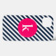 Coque électronique personnalisable avec bandes navy et blanches en diagonale. D'autres couleurs sont disponibles.