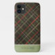 Motif plaid hivernal peint tendance, coque iphone personnalisée. Motif mignon à l'aquarelle en noir, tan, rouge, vert et argent. Fonctionnalités, espace texte modèle pour le nom ou l'expression.