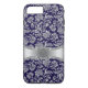 Coques Case-Mate iPhone Navy Blue & Shiny Silver Floral Damas
