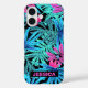 Coques Case-Mate iPhone Neon Pink Blue Tropical Plant Pattern Personalised