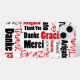 Ce boîtier iPod Touch est conçu avec du Merci rouge et noir écrit en plusieurs langues et une variété de styles de police sur le blanc.