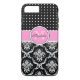 Coques Case-Mate iPhone Noir rose et blanc Damas & Motif PolkaDot